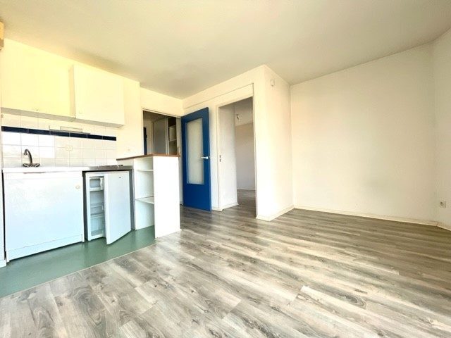 Dans une copropriété sécurisée à louer un appartement 2 pièces composé d'une entrée avec placards, d'une pièce principale avec sa cuisine équipée US aménagée frigo top et plaques électriques 2 feux, 1 salle de bain, WC, 1 chambre avec placard donnant sur un balcon.