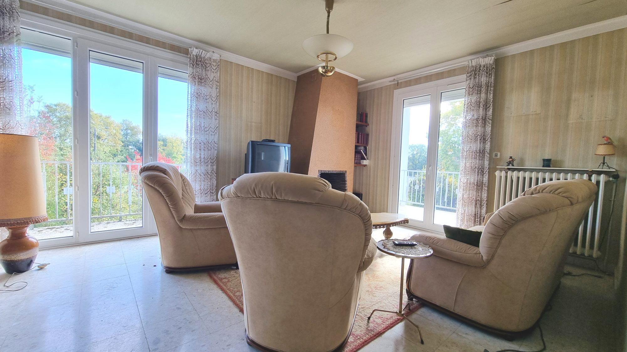 Elle se compose à l'étage d'une entrée, d'une cuisine indépendante aménagée, d'un grand séjour double avec cheminée ouvrant sur balcon, de trois chambres, d'une salle de bains, et d'un wc.