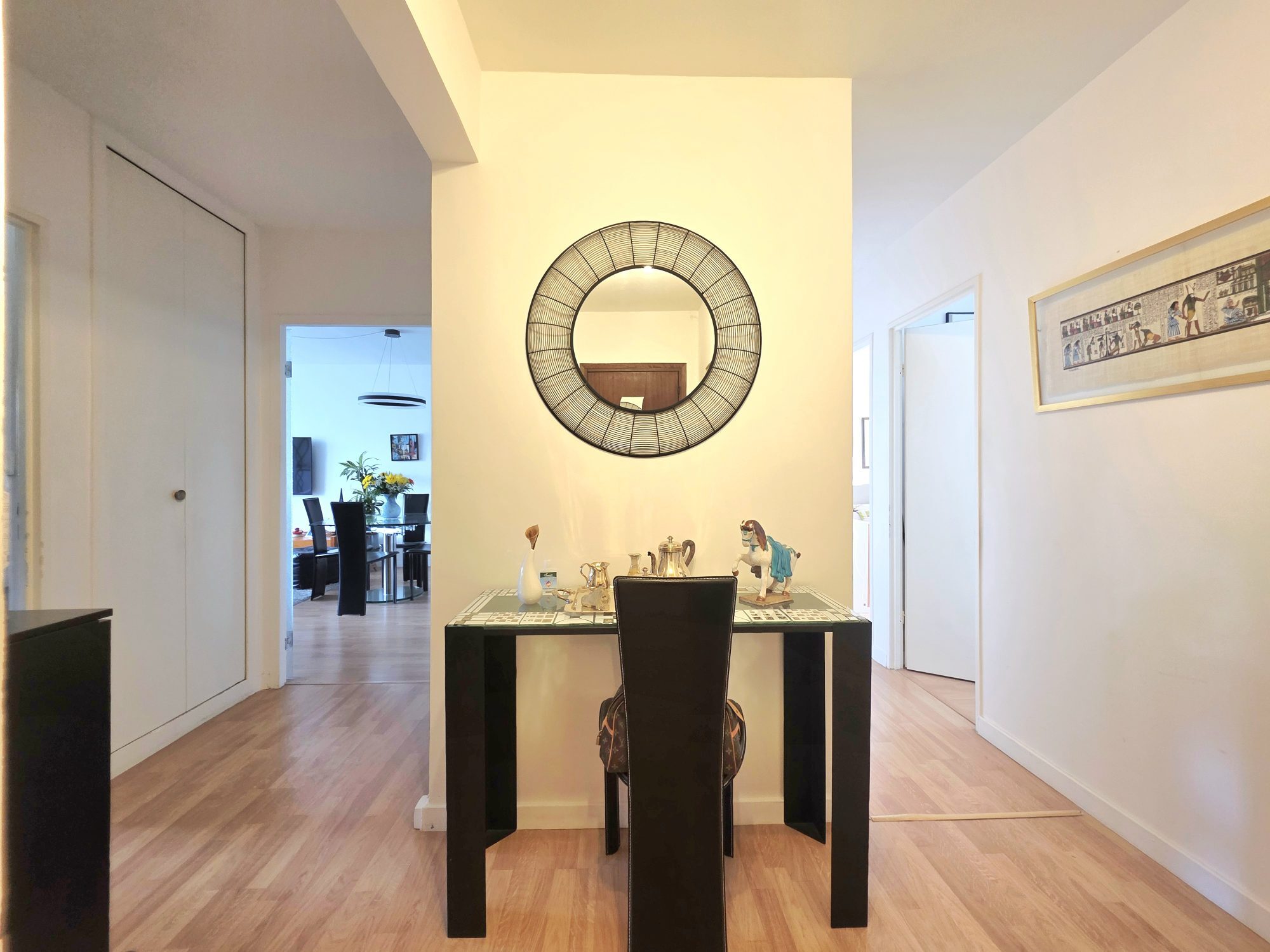 Le séjour lumineux, exposé Est, offre une agréable vue dégagée sur les arbres et le canal. Possibilité d'ouvrir la cuisine sur le séjour pour un espace de vie encore plus convivial.