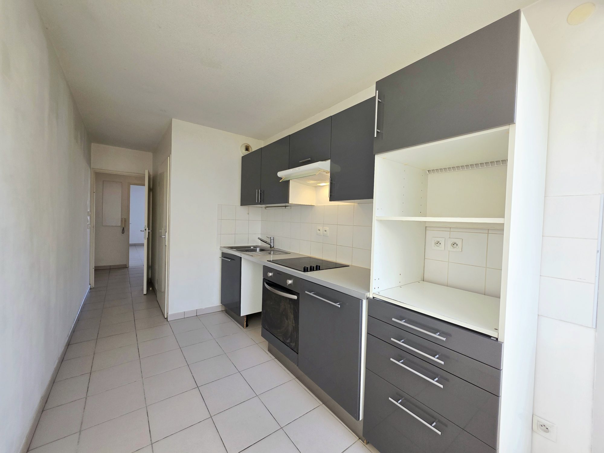 La cuisine indépendante est aménagée et équipée (plaque, hotte, four), vous trouverez en suivant un grand séjour convivial, donnant accès à une grande terrasse de plus de 30 m², idéale pour vos moments de détente et vos repas en extérieur, avec une vue dégagée.